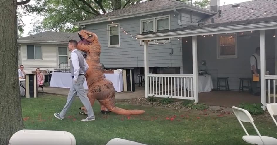 Deanna Adams, de Nebraska, Estados Unidos, eligió a su hermana Christina como su dama de honor, además le dijo que podía vestirse como ella quisiera, algo que la hiciera sentir cómoda en el día del evento. Christina le tomó la palabra y llegó a la boda vestida de dinosaurio.